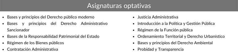 El objetivo general del programa es integrar la formación de los licenciados y profesionales del Derecho con conocimientos profundizados y especializados en el ámbito del Derecho Administrativo, para abordar asuntos complejos que se presenten en el ejercicio de la profesión en forma adecuada, oportuna y eficaz. El programa busca proporcionar a los alumnos las herramientas e instrumentos académicos y metodológicos necesarios que les permitan enfrentar de mejor manera el ejercicio de la profesión, sea en el sector público o privado. De tal manera, los alumnos adquirirán conocimientos avanzados en Derecho Administrativo que les serán una herramienta de utilidad para desarrollar su actividad profesional.