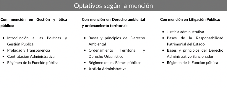 2. La indicación del Magíster por la cual se opta es un requisito necesario para el procesamiento de la solicitud. Su omisión implica que el postulante opta por cursar el programa de Magíster en Derecho Administrativo (sin mención). El cambio de mención o la elección posterior de una podrá ser autorizado posteriormente por el Director(a) del programa ante solicitud escrita del alumno(a) y con previa consulta al Comité Académico del Magíster.