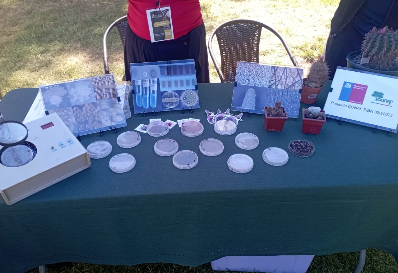 Durante la fiesta se presentaron los resultados parciales del proyecto CONAF-FIBN 020/2023, dirigido por la profesora Carolina Yañez, Directora del Laboratorio de Microbiología, junto con el Dr. Pablo Guerrero, especialista en cactáceas de la Universidad de Concepción, y el profesor Carvallo. El objetivo de este proyecto es generar conocimiento del microbioma de cactáceas endémicas del norte de Chile, microbioma que puede ser usado en la inoculación de semillas y raíces, para favorecer la conservación de estas plantas. El proyecto está centrado en el estudio de tres especies de cactus: Eriosyce aurata, Eriosyce rodentiophila y Eriosyce mutabilis.
