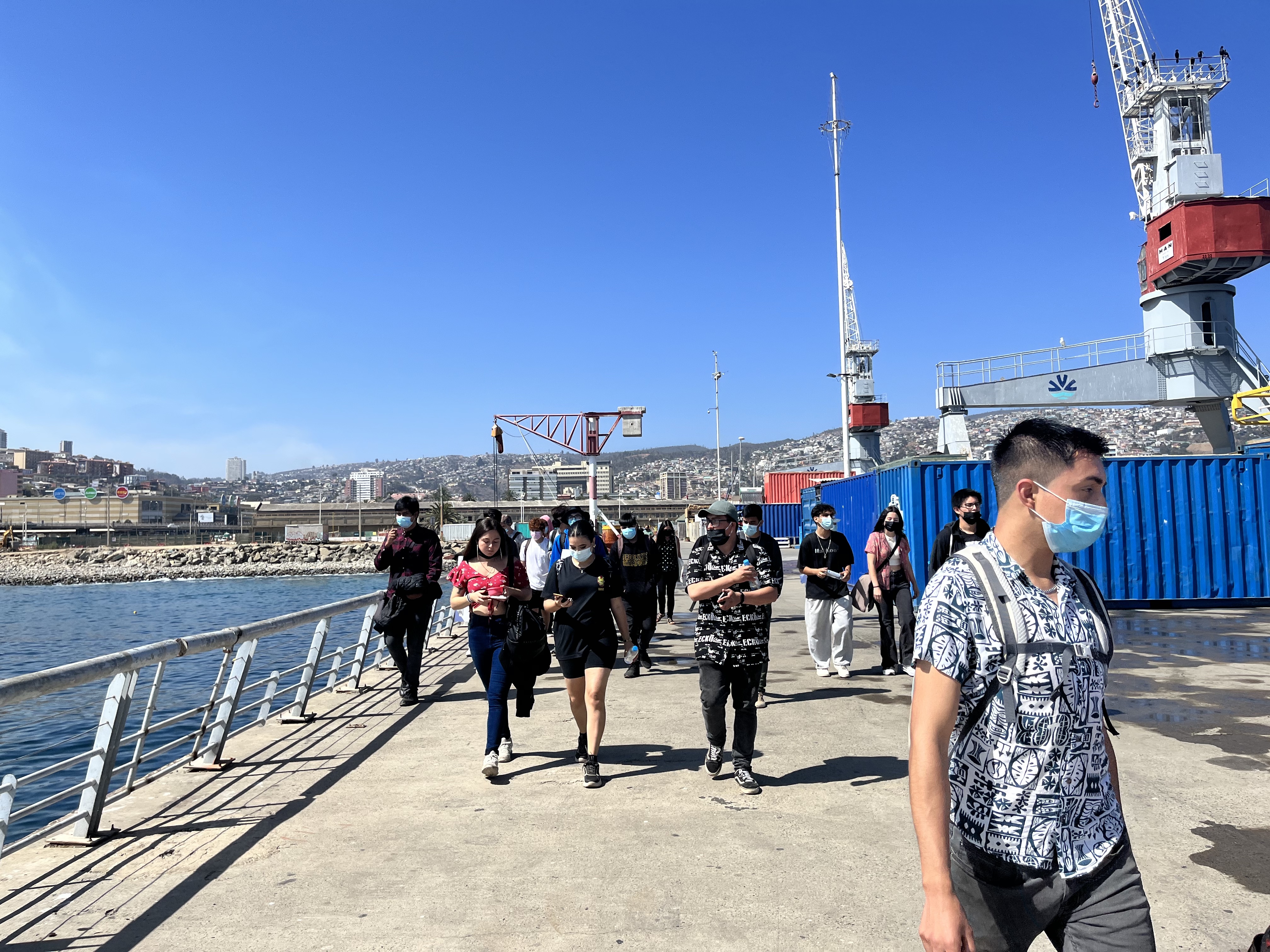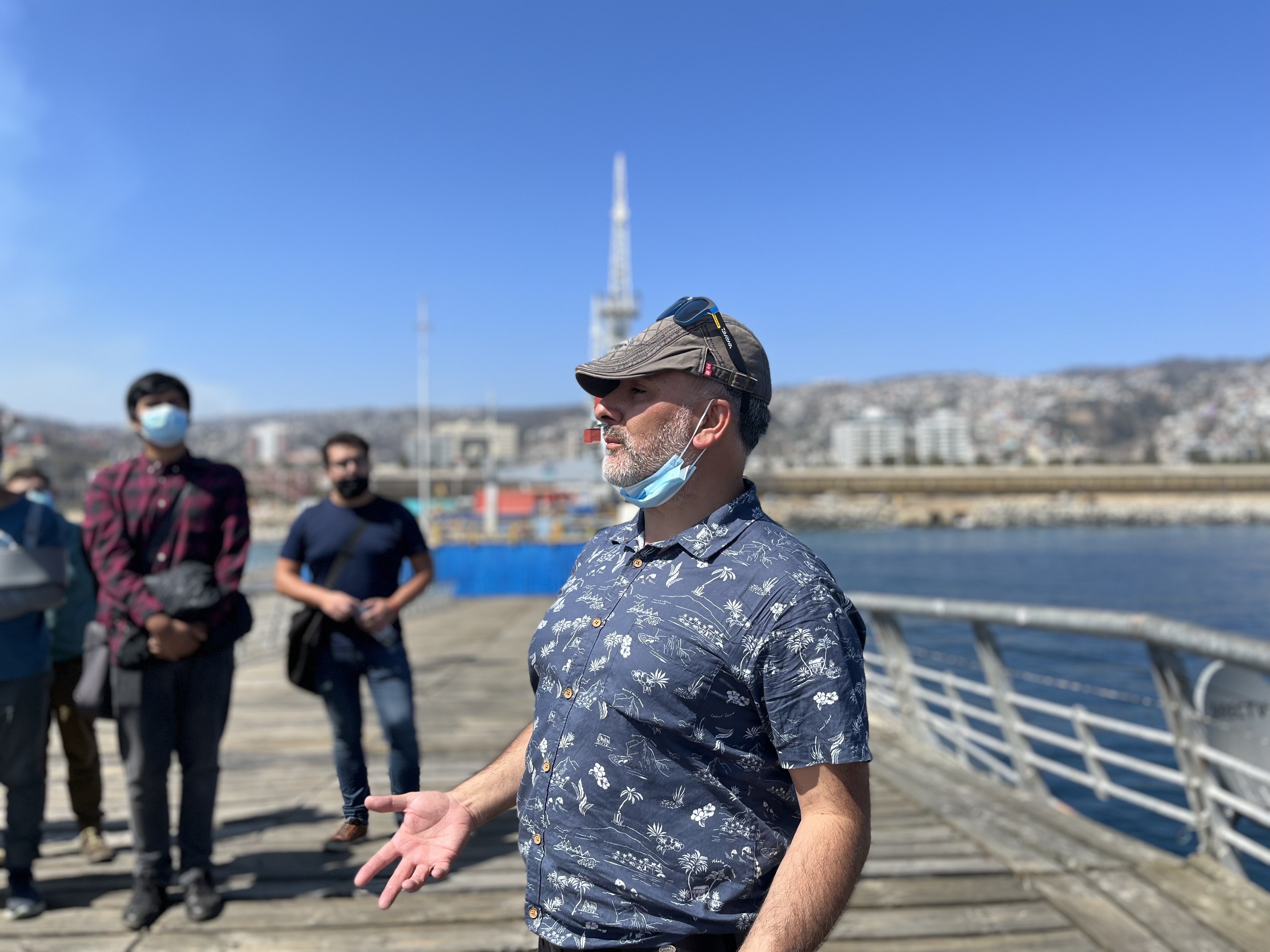 Este primer día transcurrió con la primera actividad en terreno para los recién llegados, quienes junto a un grupo de profesores y estudiantes de cursos superiores se dirigieron al Muelle Barón de la ciudad Puerto, trayecto que se aprovechó para acotar observaciones del territorio y sociabilizar.