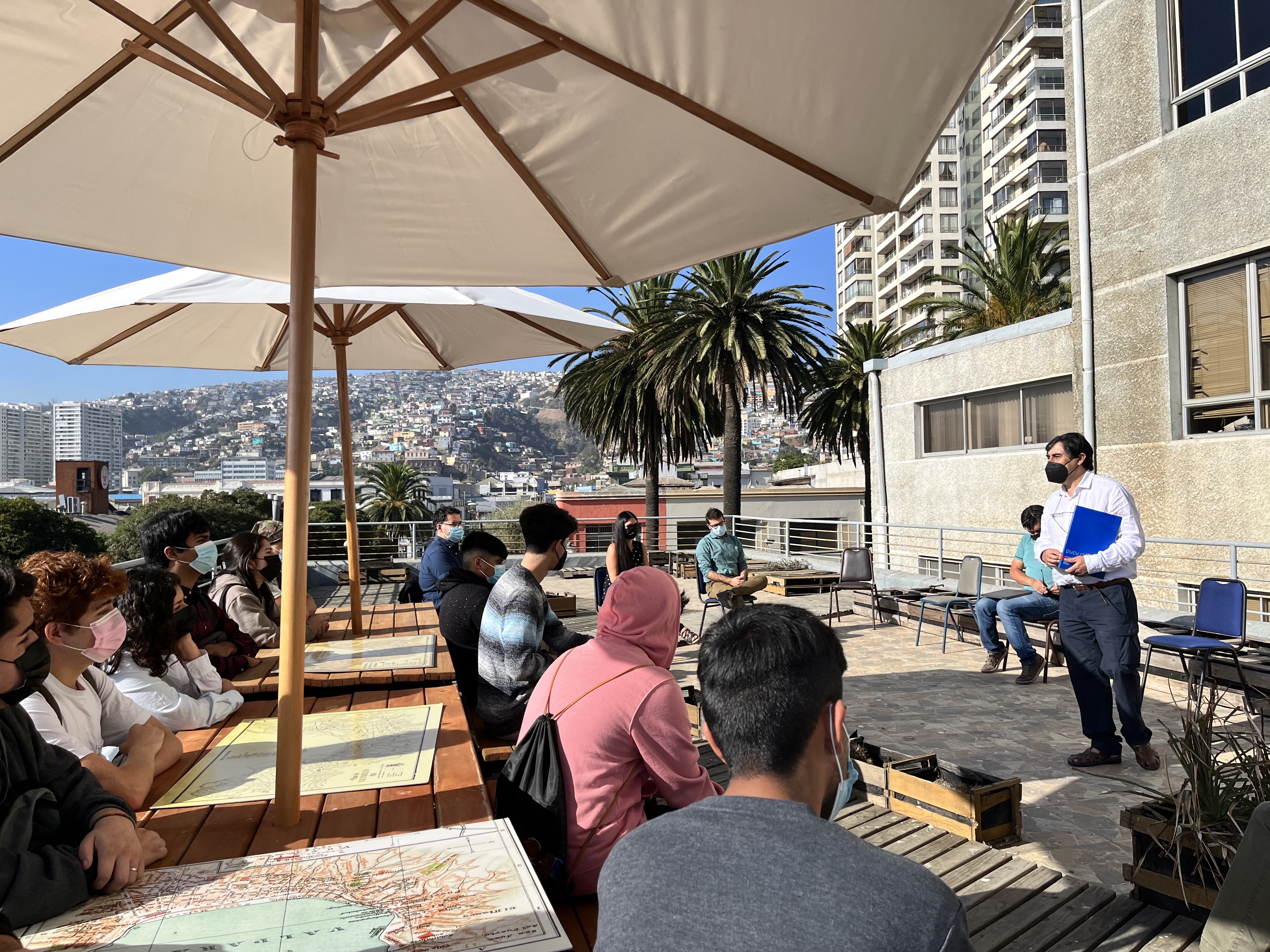 Una veintena de estudiantes se dieron cita al primer encuentro, que desde la mañana contempló un itinerario marcado por las palabras de bienvenida del director del Instituto, Rodrigo Figueroa, así como del Jefe de Docencia, Rudy Allesch y la profesora Marion Steiner, quienes destacaron las capacidades para estudiar los territorios y sus complejidades desde Valparaíso, así como los desafíos actuales que enfrenta la profesión a través de sus diversas disciplinas y especialidades.