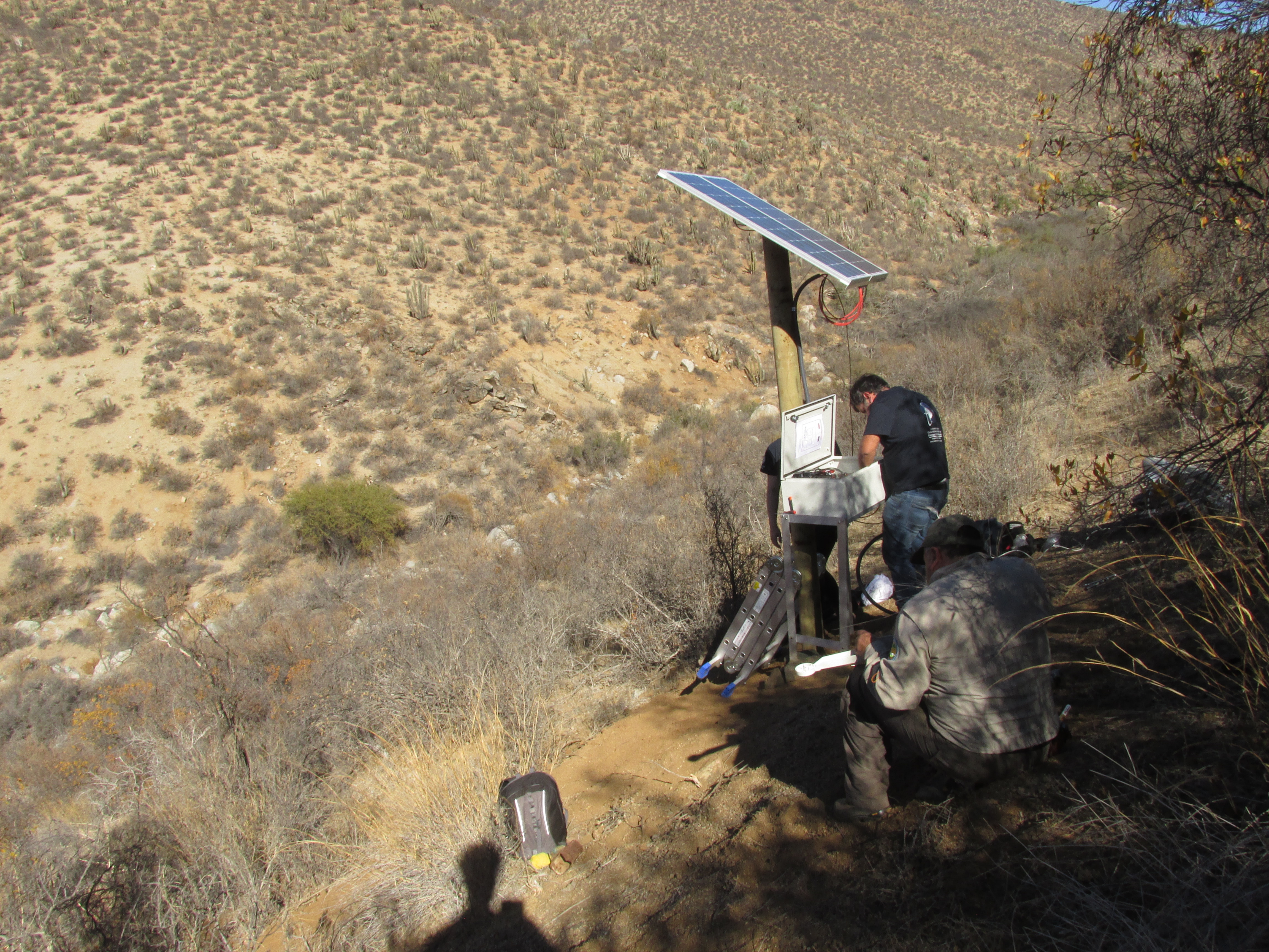 La salida a terreno, que duró de lunes a miércoles, contó con la participación de los asistentes de investigación Javiera Aguayo, geógrafa; Pablo Stuardo, ingeniero civil electrónico; Ignacio López, estudiante de geografía y Boris Saavedra, guardaparques de la Reserva. A ellos, se sumó la colaboración de personeros del (CR)2, Centro de Ciencias del Clima y la Resilencia; del Ministerio de Medio Ambiente y de Conaf Región de Coquimbo.