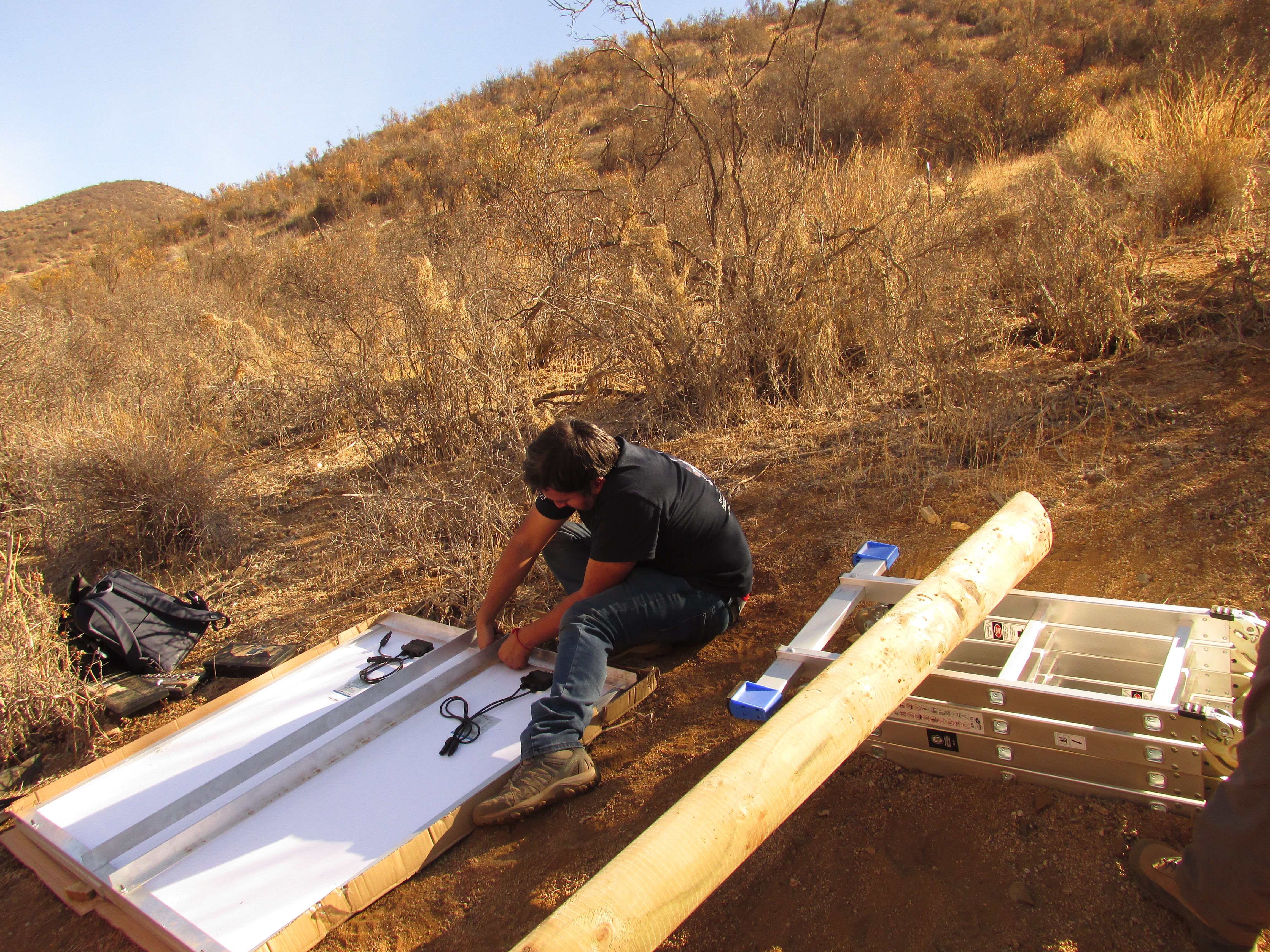 Entre las tareas que comprendió este terreno, se realizó el armado de la estructura de soporte para la Phenocam, la instalación de paneles solares para el funcionamiento de esta cámara, la instalación del módulo para esta misma cámara -el cual fue ubicado en una de las laderas de la Reserva-, así como la instalación final de la Phonecam.