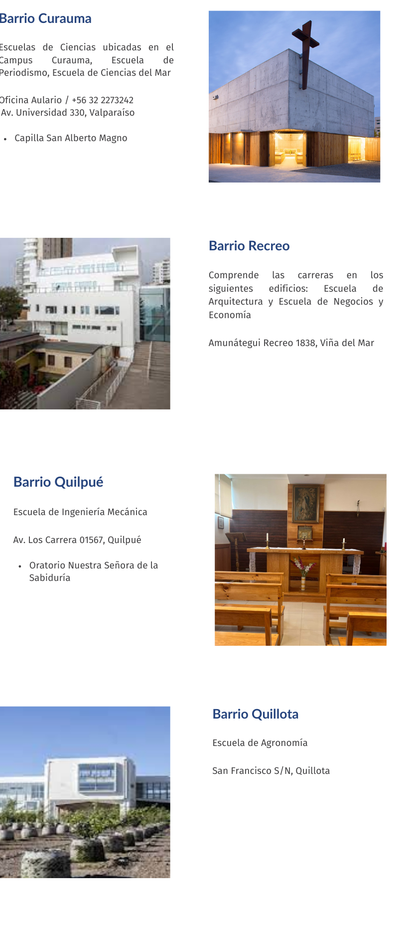 Usted está en: Portada | Pastoral Estudiantes Barrios Pastorales Barrios pastorales donde desarrollamos nuestra misión Los barrios pastorales, son “unidades territoriales en las cuales se agrupan distintas sedes de la PUCV, donde la Pastoral desarrolla su misión, de manera descentralizada e interdisciplinaria”. Twittear subir volver