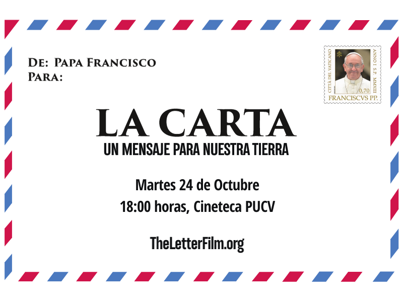 La Pastoral y PUCV Sostenible invitan a la comunidad universitaria a la exhibición de la cinta “La Carta: un mensaje para nuestra tierra” para este próximo Martes 24 de Octubre a las 18:00 horas en la Cineteca PUCV.