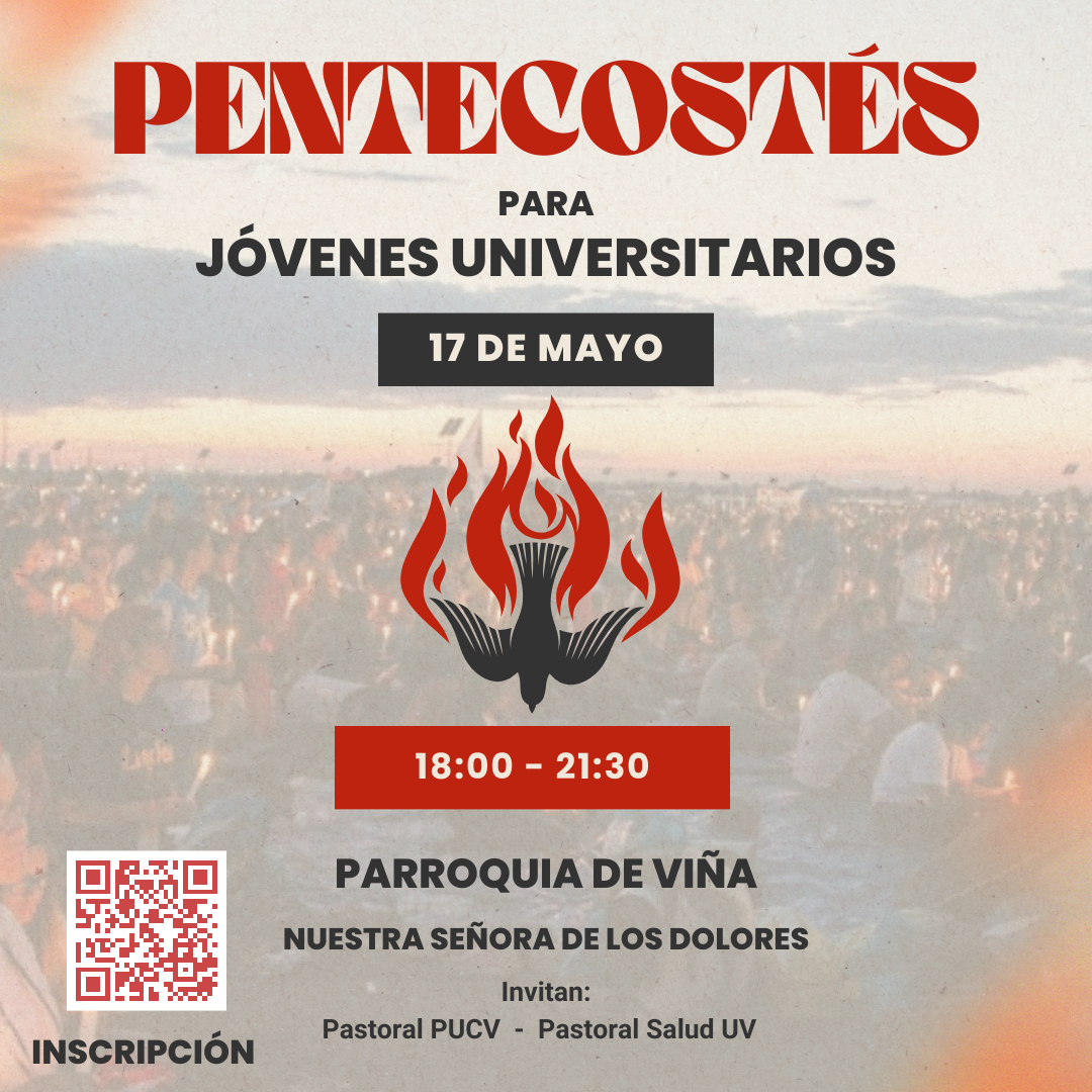 ¡Queridos estudiantes! Les invitamos a participar del encuentro de Pentecostés, que se realizará el próximo viernes desde las 18:00 horas en la Parroquia de Viña del Mar. ¡Confirma tu asistencia y te esperamos!