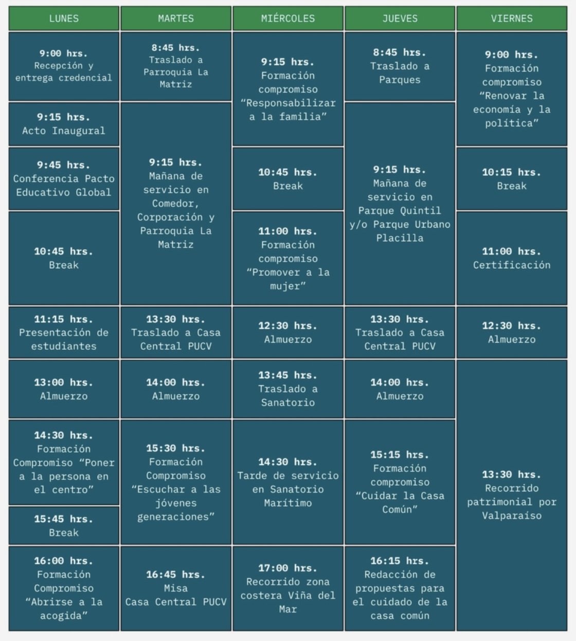 A través de jornadas formativas, instancias de diálogo y acciones de servicio comunitario, se espera fortalecer el compromiso de los participantes con una educación centrada en la persona y orientada al bien común, en coherencia con los valores cristianos y la misión de la Iglesia en el ámbito universitario.