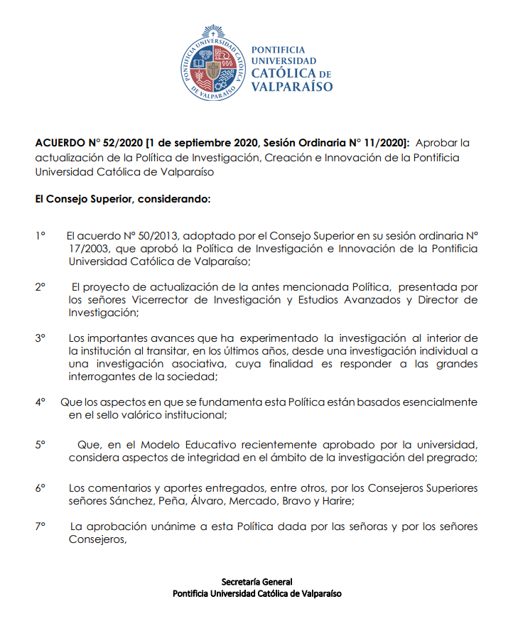Usted está en: Portada | VINCI Política de Investigación, Creación e Innovación PUCV Descargas Política de Investigación, Creación e Innovación PUCV Twittear subir volver