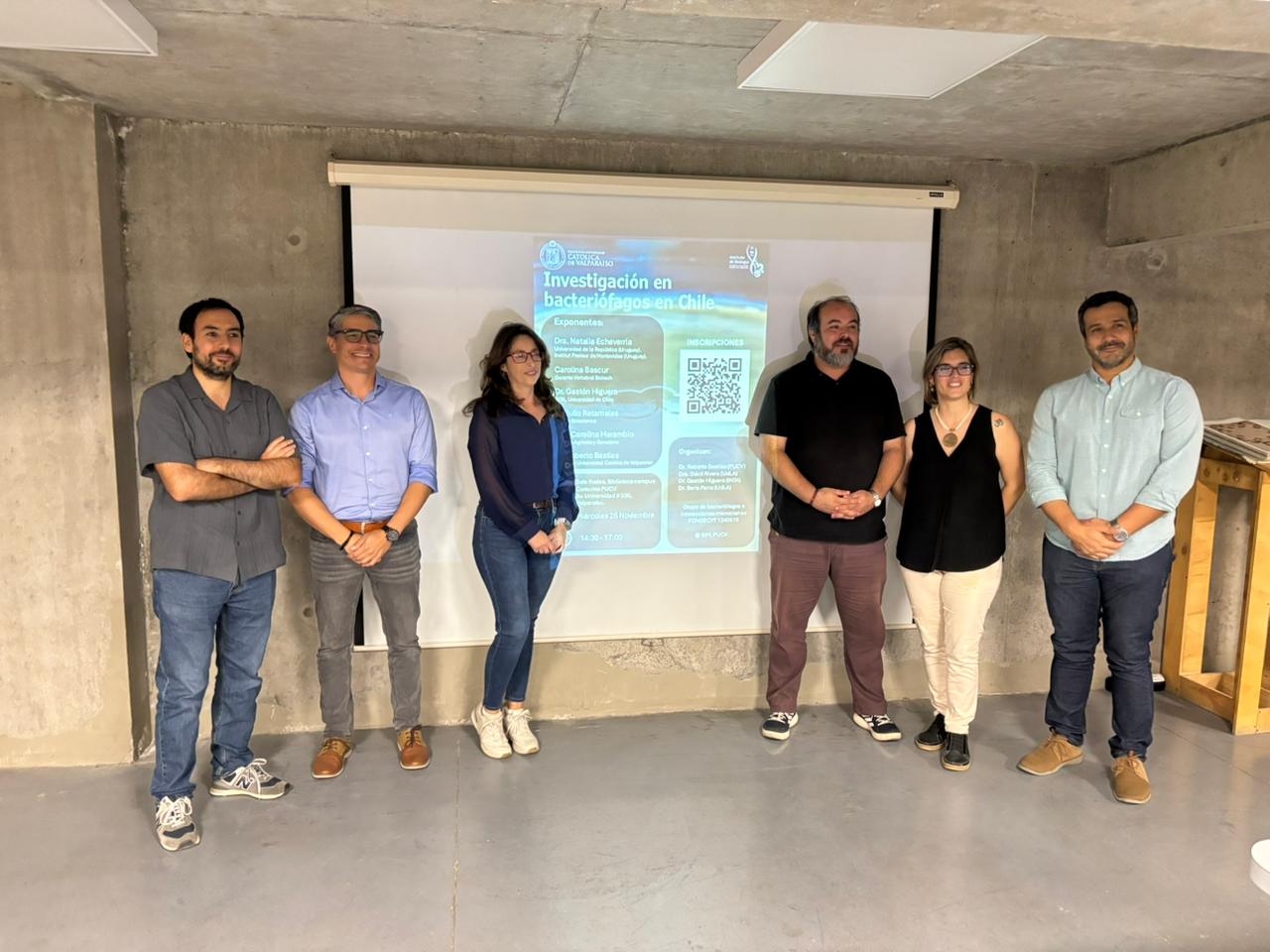El pasado 26 de noviembre se realizó en la Biblioteca de la Facultad de Ciencias de la Pontificia Universidad Católica de Valparaíso el simposio “Investigación en bacteriófagos en Chile”, un encuentro del cual esta financiado por el proyecto Fondecyt 1240615 y que reunió a más de cuarenta asistentes, incluyendo investigadores, estudiantes de pre y posgrado, representantes de instituciones públicas y representantes del sector privado.