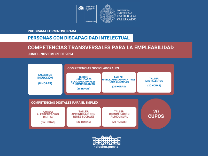 Además de la inducción a la PUCV, se realizarán cursos para aprender a emprender, desde la toma de conocimiento del ecosistema de emprendimiento, a la formulación de proyectos y marcas propias, y también talleres relativos a la inclusión sociolaboral y gestión del empleo. Las clases se impartirán en jornada diurna, de 09.30 a 13.30 horas, dos días a la semana. Hay 15 cupos disponibles.
