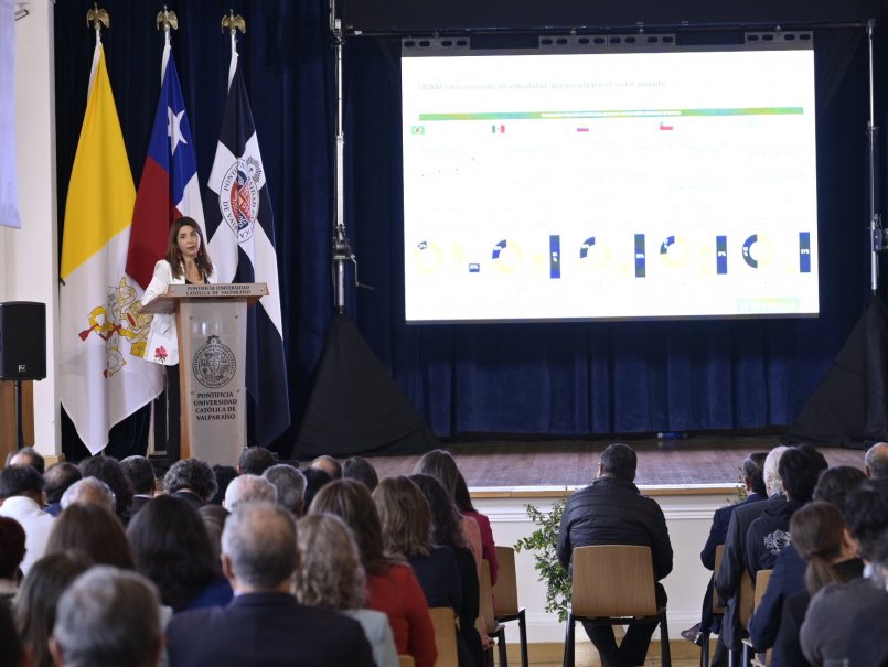 En relación a las universidades chilenas, la expositora hizo un llamado a enfrentar un contexto dinámico marcado por la demanda de inclusión, calidad y relevancia; considerar desafíos de financiamiento con un enfoque que aumente la accesibilidad y reduzca la desigualdad en el acceso a la educación superior, evolucionar para responder a las necesidades del mercado laboral en constante evolución e innovar en la calidad de los programas para enfrentar un panorama competitivo internacional.