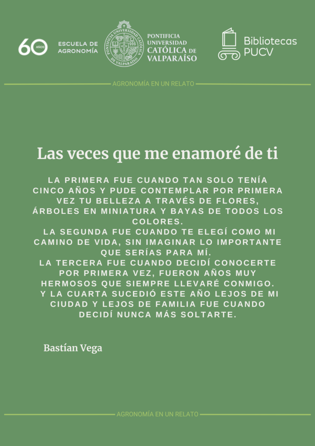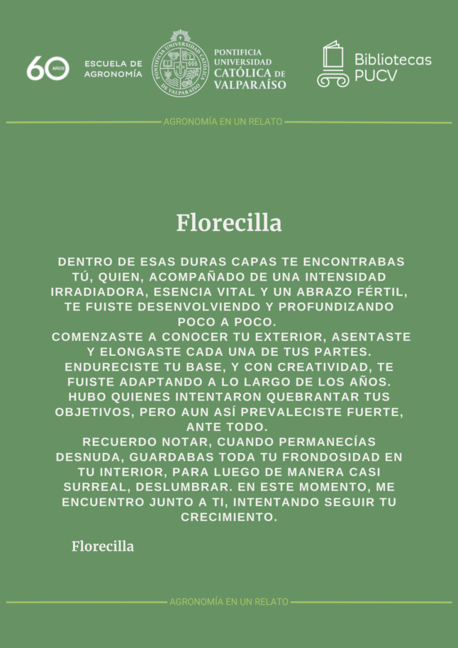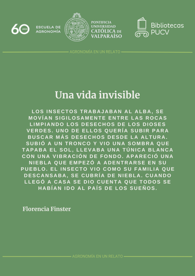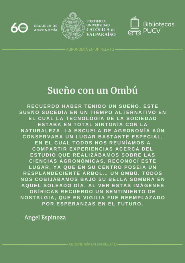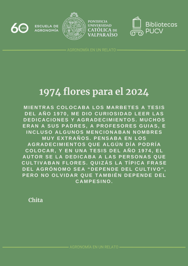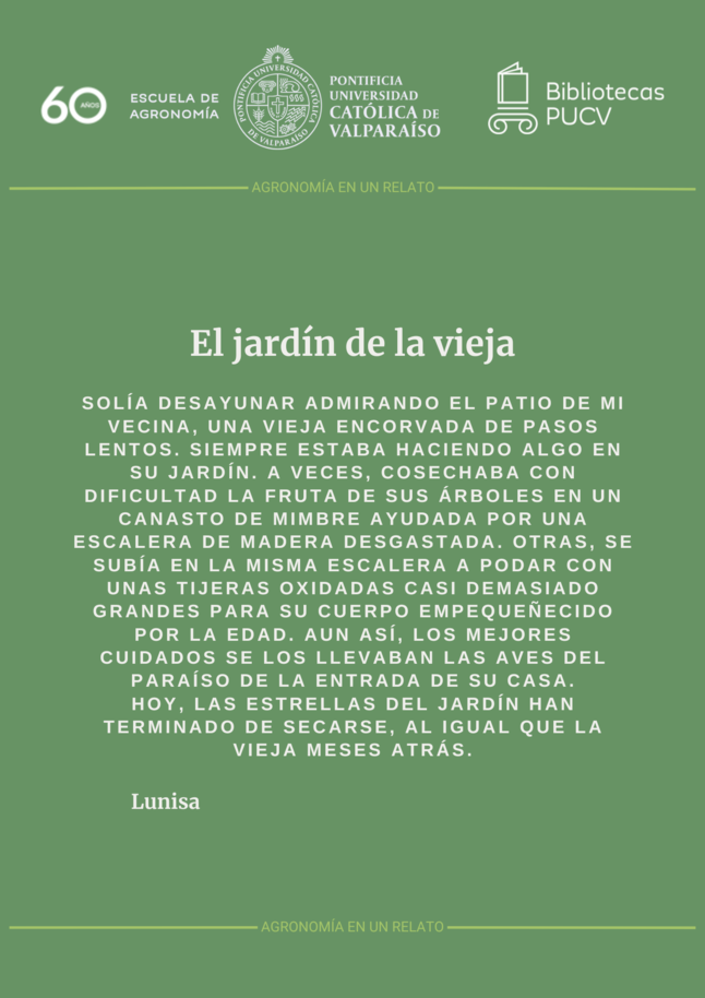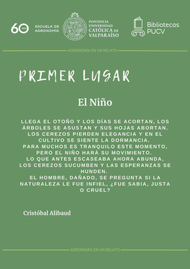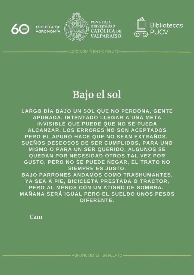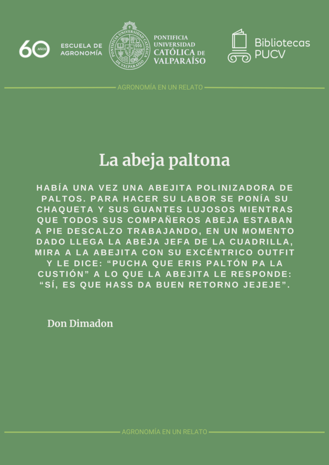 Agronomía en un relato es un concurso de microcuentos que se enmarcó en los 60 años de la escuela de agronomía.  Esta actividad fue organizada por la Oficina de Vinculación con el Medio de la Escuela, en colaboración con Bibliotecas PUCV.