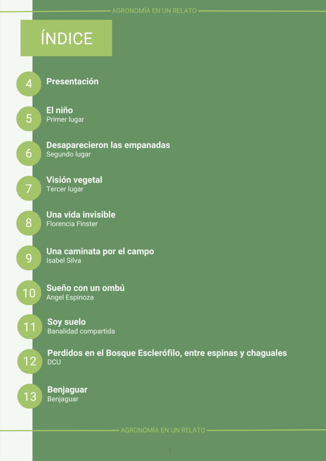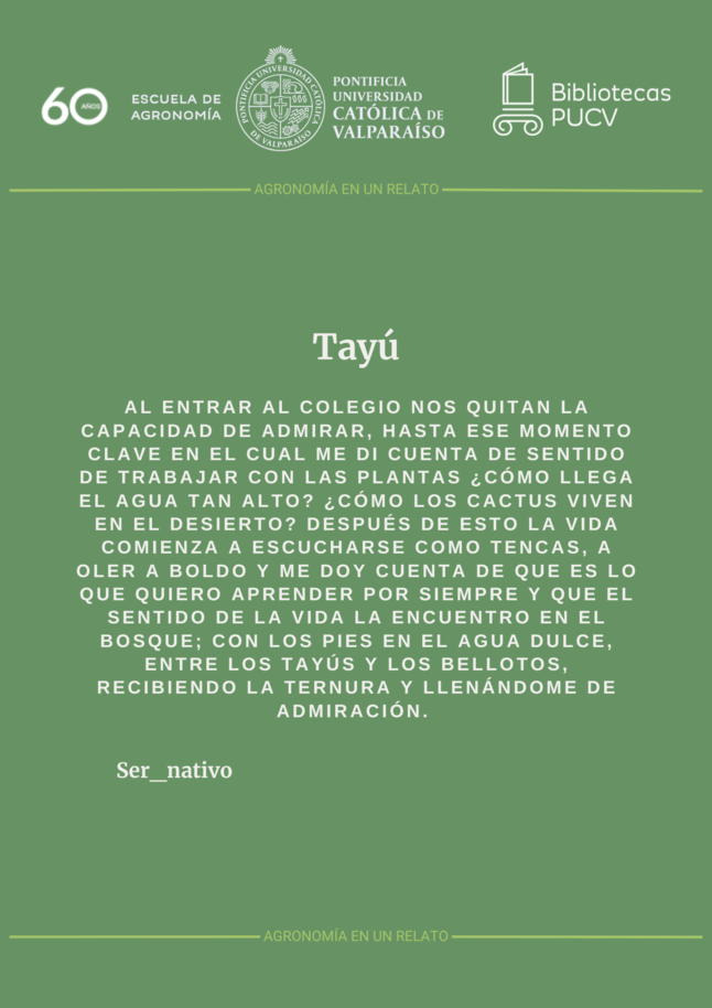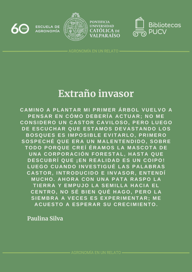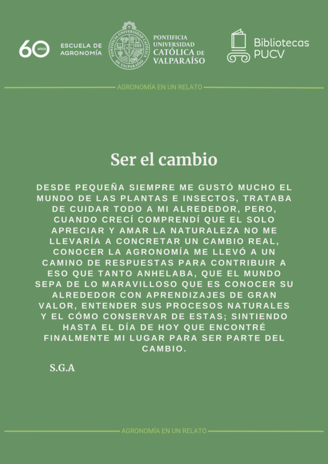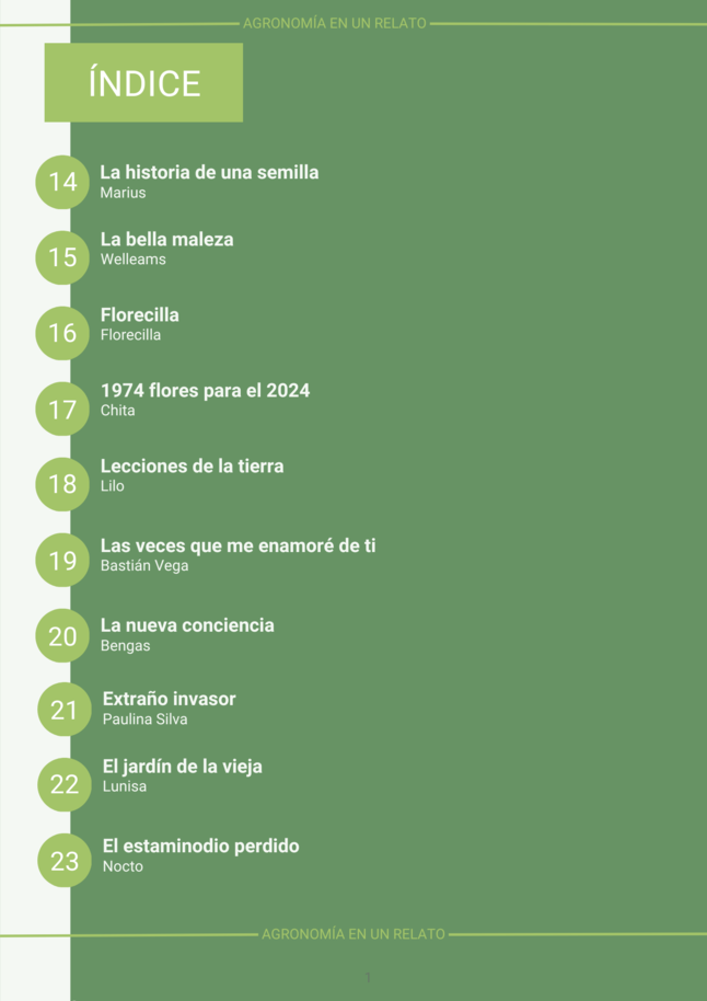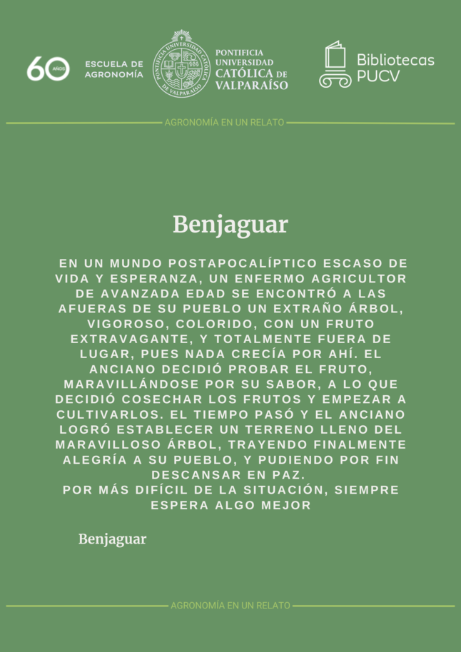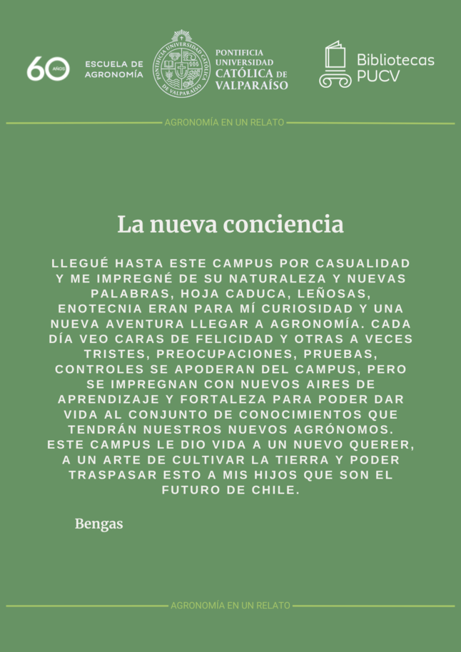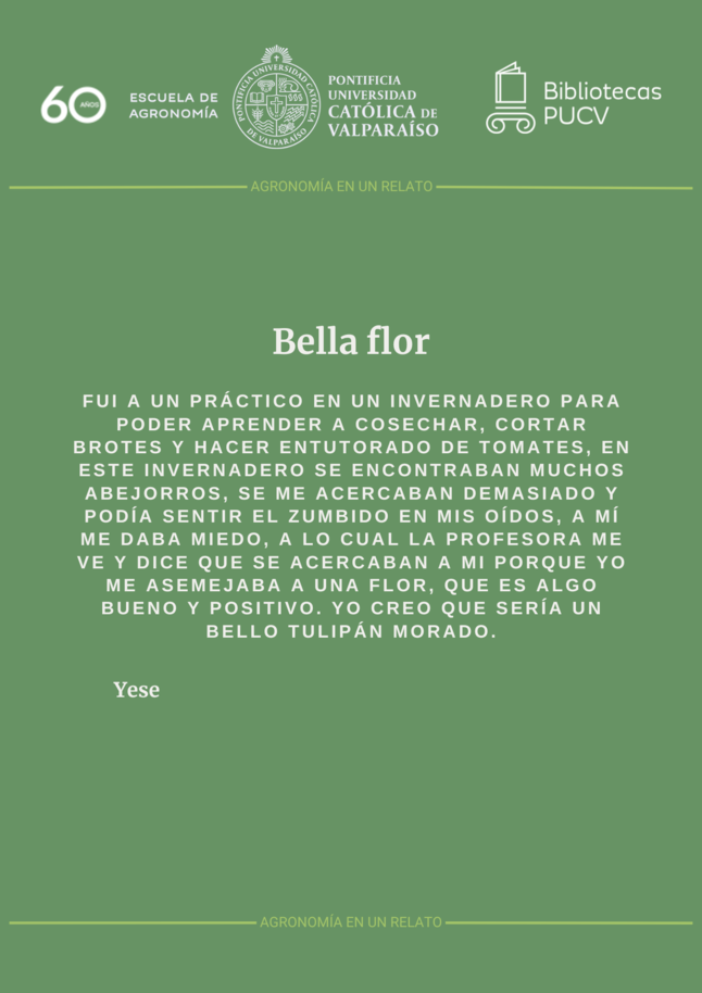 Agronomía en un relato es un concurso de microcuentos que se enmarcó en los 60 años de la escuela de agronomía.  Esta actividad fue organizada por la Oficina de Vinculación con el Medio de la Escuela, en colaboración con Bibliotecas PUCV.