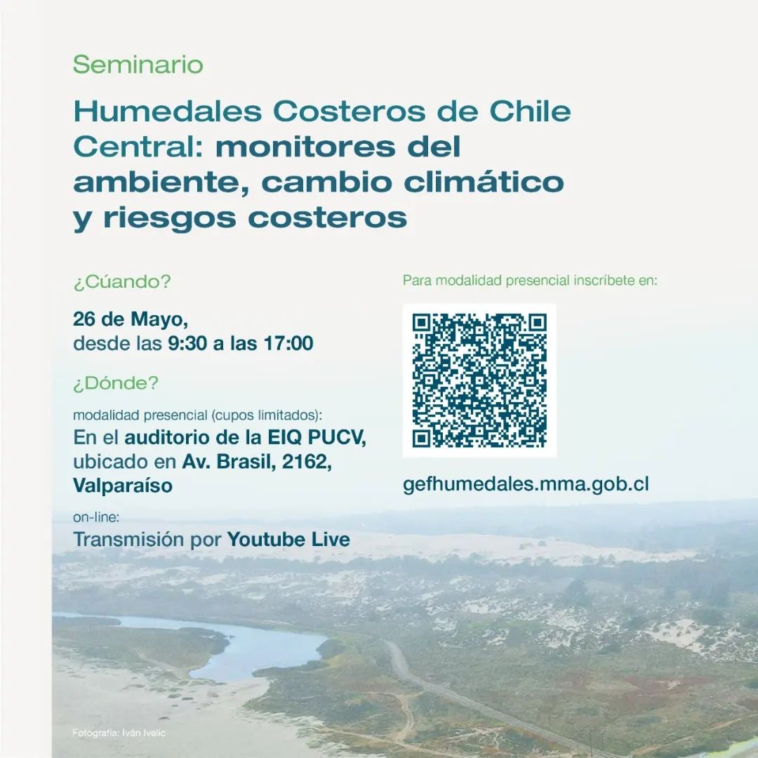 A partir de las 9.30 horas, la actividad se efectuará en el auditorio de la Escuela de Ingeniería Química PUCV (Av. Brasil 2162, Valparaíso) y es organizada por el Proyecto GEF Humedales Costeros.