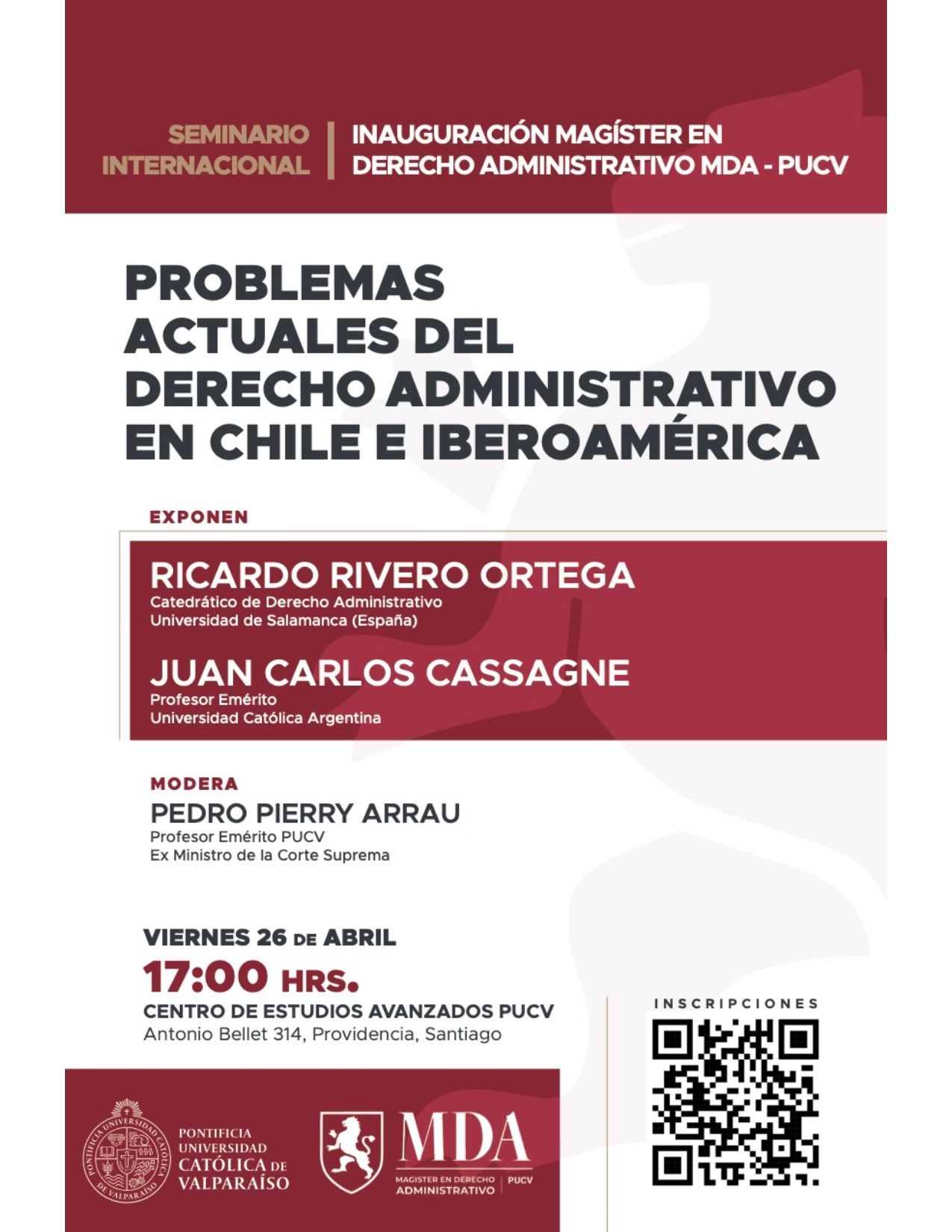 El Magíster en Derecho Administrativo de la Facultad de Derecho de la PUCV, dará inicio a su año académico con el seminario internacional "Problemas actuales del Derecho Administrativo en Chile e Iberoamérica".