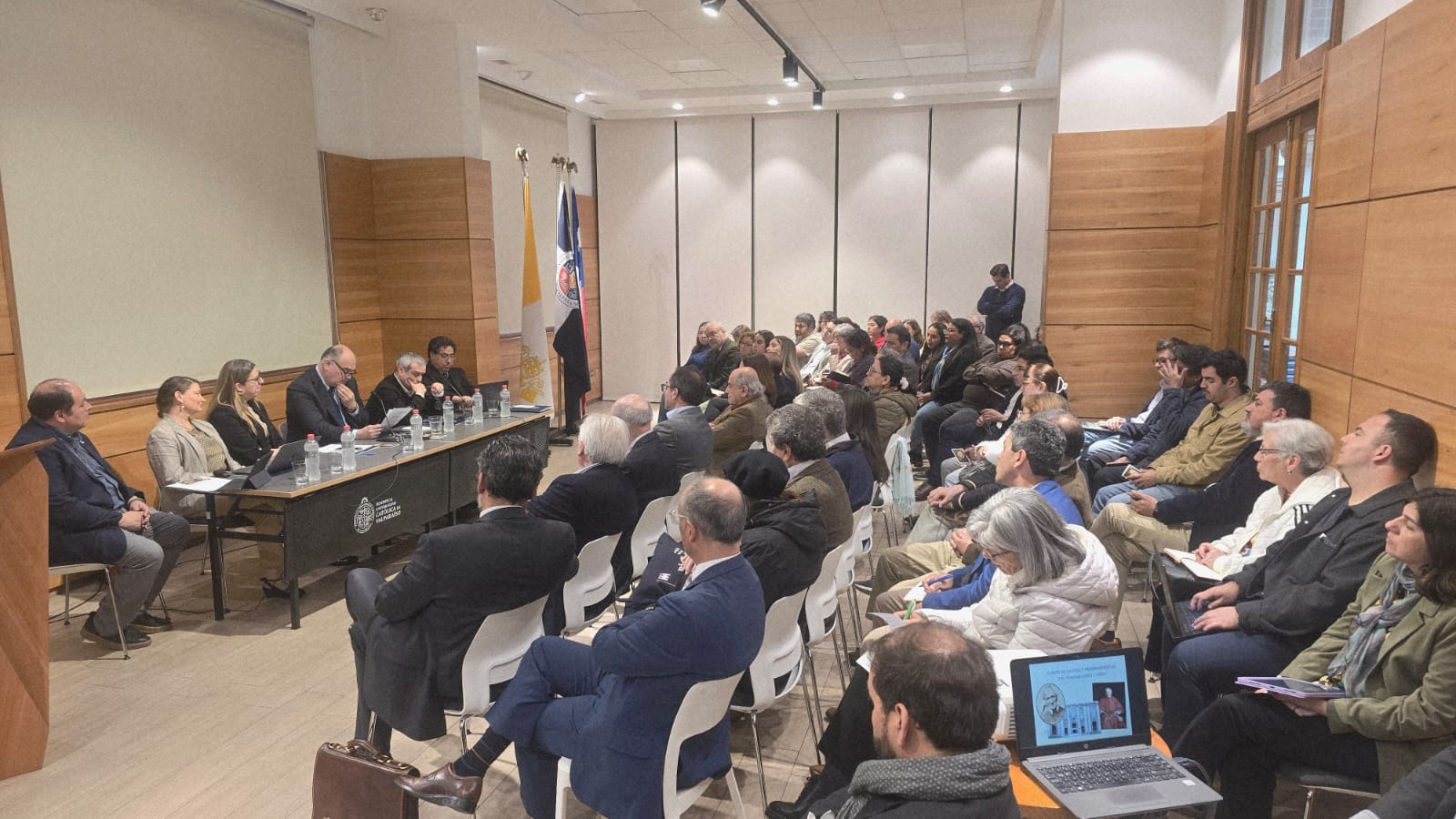 El encuentro fue moderado por la decana de la Facultad Eclesiástica de Teología, profesora Loreto Moya, y contó con la conducción del maestro de ceremonia Rodrigo Quijano. Asistieron el Vice Gran Canciller, Fray Cristian Eichin OFM; el vicerrector de Desarrollo, Jorge Mendoza; autoridades universitarias, académicas y académicos, estudiantes e invitados especiales.