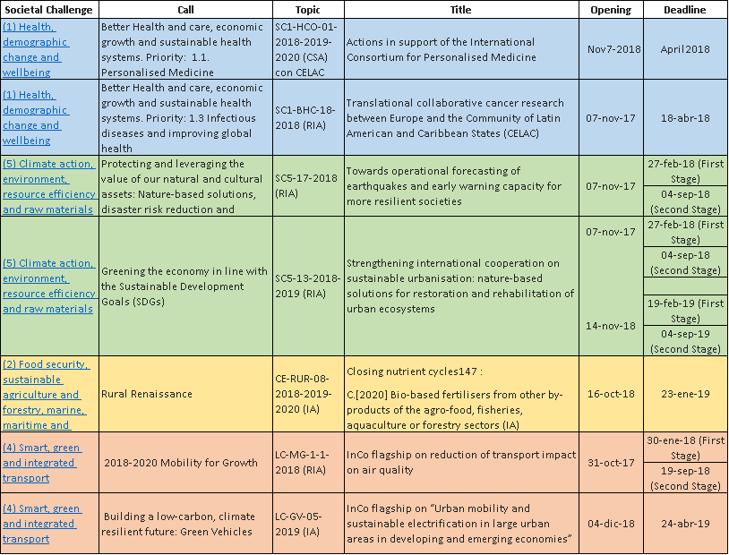 Convocatorias específicas del programa europeo Horizonte 2020 que requieren participación de países de América Latina y el Caribe